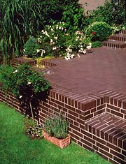 Der zunächst als Nachteil erscheinende Höhenunterschied zwischen Haus und Garten wurde zur Gestaltung einer grosszügigen Treppenanlage mit Zwischenpodesten, Sitzplatz und auflockernden Pflanzbeeten genutzt.